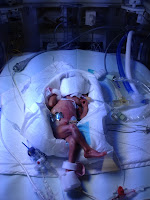 The other reason for her upbeat mood, was being given some home truths by Lucy's nurse for the day, Rikki. It was explained that we were well and truly entrenched in the 'honeymoon' phase - Lucy still has a healthy dose of positive pregnancy-type hormones kicking around her system at the moment, which is normal post-delivery. However, in the few days these levels will decrease and Lucy's little body will realise that she's not built to survive in the outside world just yet and she'll go through many troughs whilst she struggles to adapt. Rikki also said to prepare ourselves for when Lucy will pick up her first infection. (That's when, not if.) Apparently it's normal for these little preterm gems to pick up 4 or 5 in the course of their NICU stay, so we were encouraged to not let the fact that she hasn't had one yet lull us into a false sense of security.