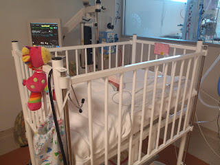That's right - Lucy's earnt her way out of the humidicrib and into a normal looking cot. Here's a wider shot: